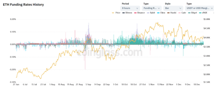 Funding rates represent market participants’ sentiments in the perpetual swaps market. Positive funding rates come part and parcel with a bullish regime. They indicate that long positions are dominant and pay a funding cost to shorts to keep those positions open.