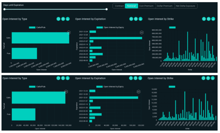 LEFT: Notionally, there’s 7.73B USD in open calls and 3.4B USD in open puts across all expirations.
